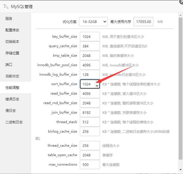 宝塔 mysql查询返回Out of sort memory, consider increasing server sort(字面意思:内存不足,请考虑增加服务器排序)